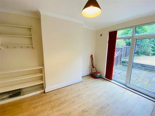Neutrally decorated. Access to the large rear garden via UPVC patio doors with fitted vertical blinds. Wood effect laminate flooring. Kitchen island. Free standing fridge-freezer. Under stairs store cupboard with two shelving units and fuse board.
